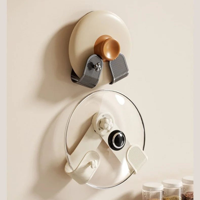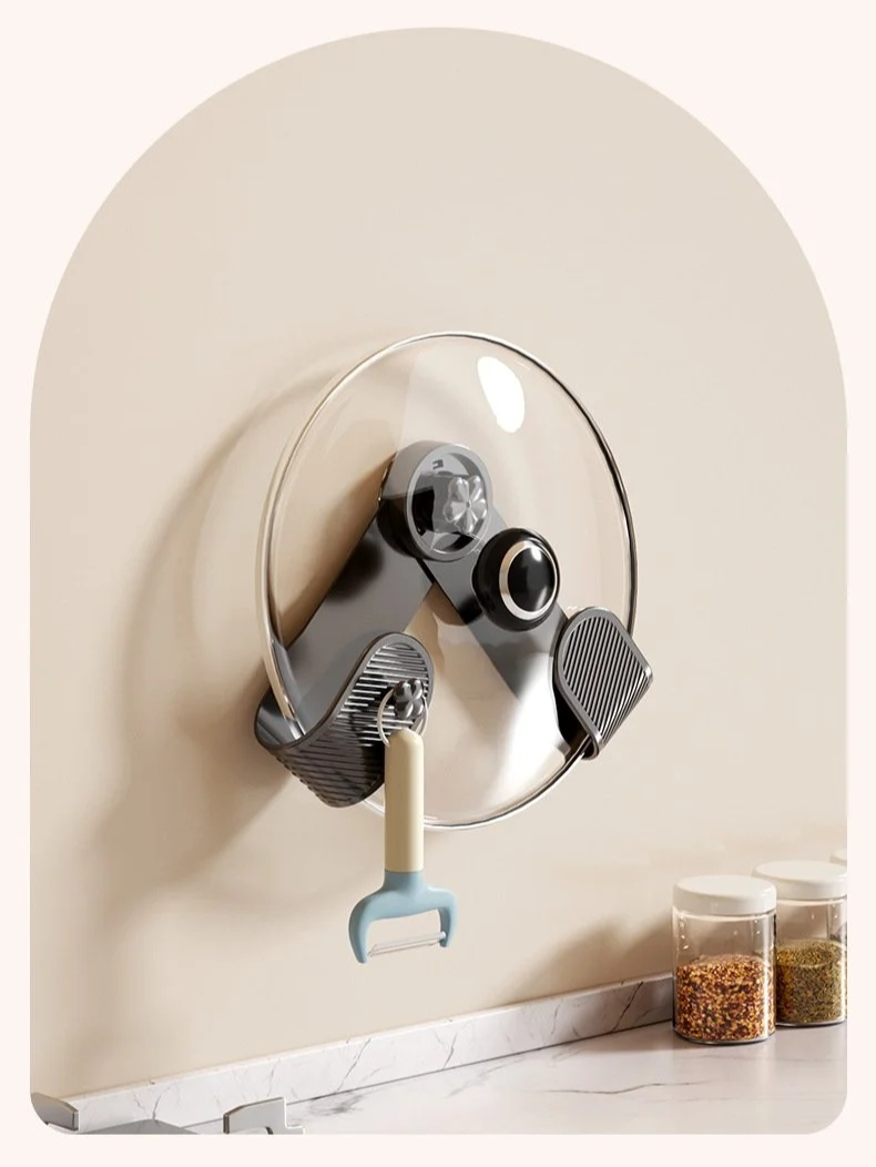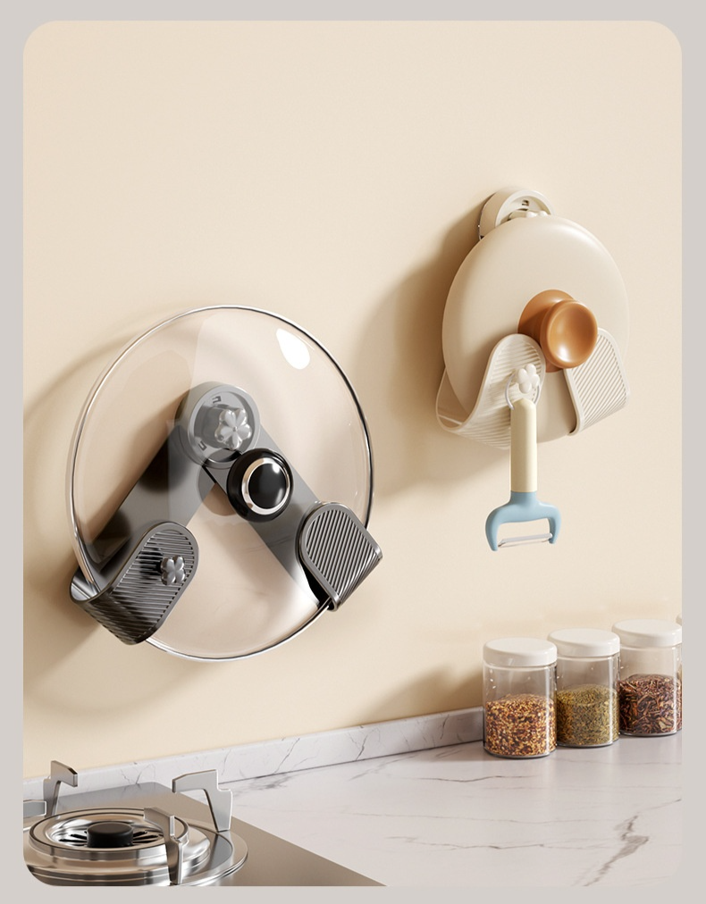 穴あけ不要 吸盤式壁掛け鍋ふたラック